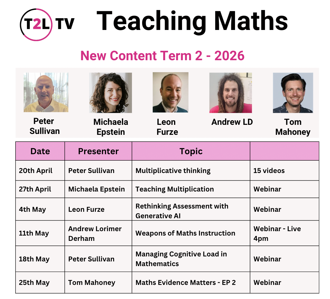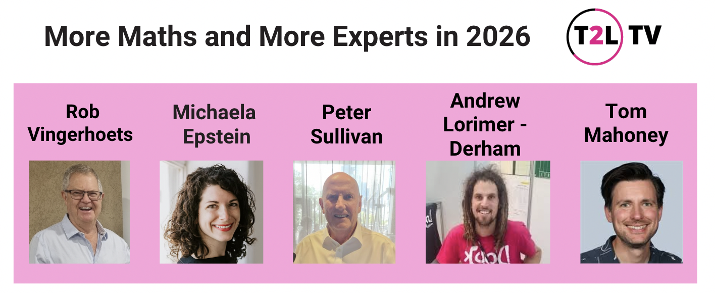 ‘T2L has consistently sourced experts in Mathematics, with expertise in both evidence-based practice and practice- based evidence. You wont feel the need for a program that churns out scripted, procedural lessons, but instead you will feel empowered in your profession to create mathematical thinkers and problem-solvers, who enjoy their learning. Another amazing opportunity to hear from three inspiring and knowledgeable educators’.